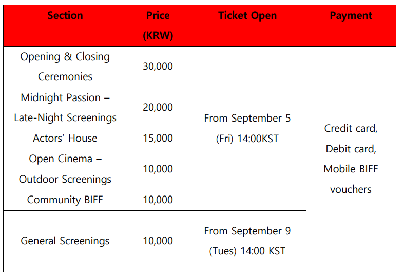 The 30th BIFF Ticket Information