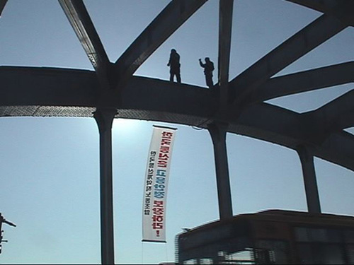 This film documents the struggle of Korea Telecom temporary workers that began in December 2000nd continued for 517 days. It charts the establishment of the labor union by the workers to the tebanding that came about against their wishes. It tells us that before, the workers had only one enemy, but now there are many other enemies which hurt the workers. How would one define the defeat of the worker? This film shows the characteristic sense of reality of the Labor News Production Group. (Hong Hyosook)